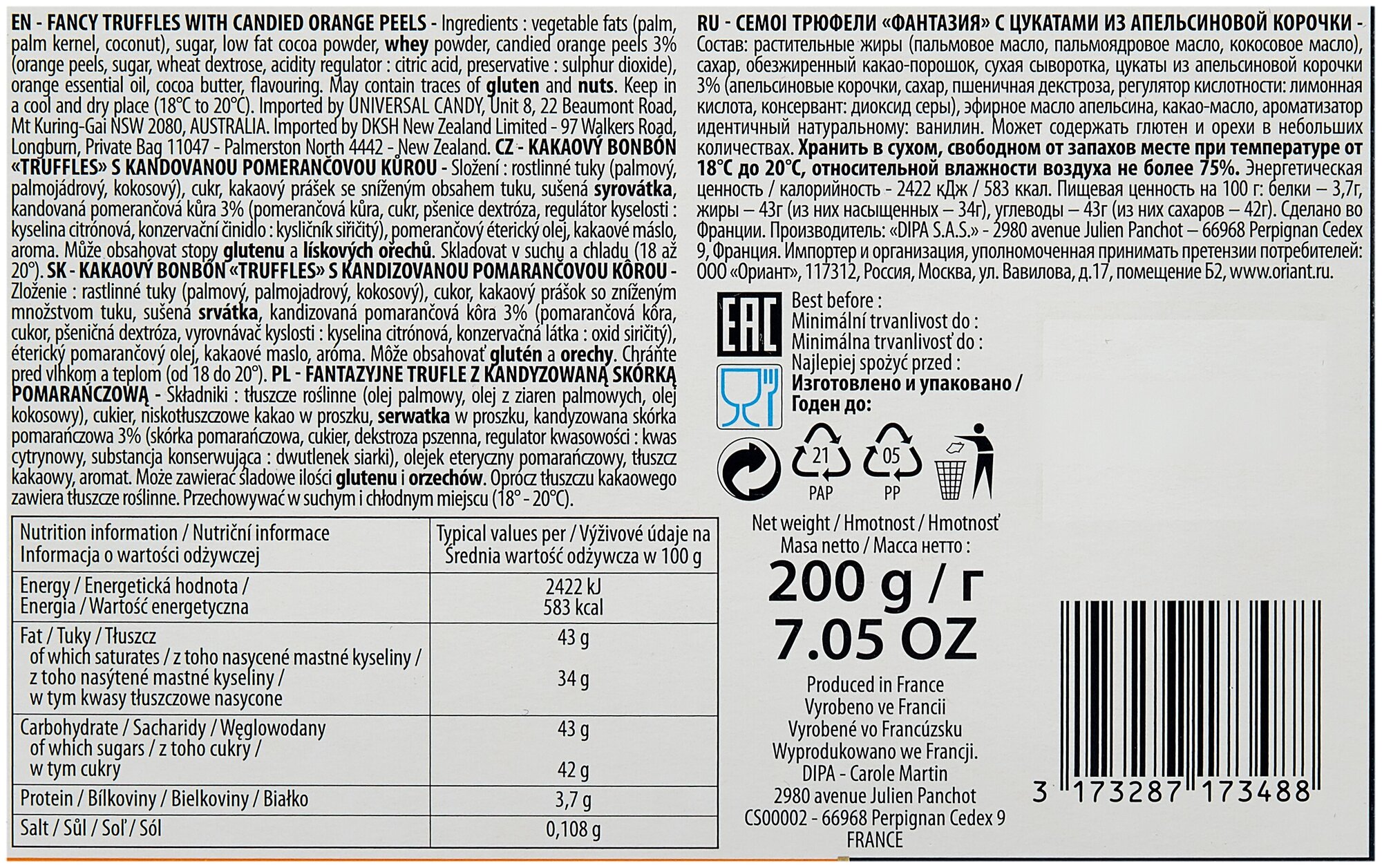 Конфеты Cemoi Трюфели шоколадные с цукатами 200г