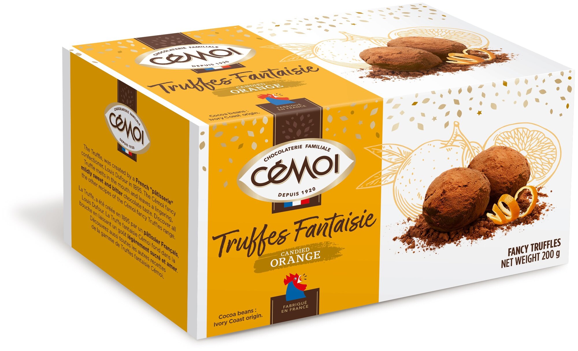 Шоколадные трюфели всегда являлись бриллиантом кондитерского искусства, символом утонченной роскоши. Удивительно нежный вкус несравнимых классических французских трюфелей Cemоi доставит вам настоящий праздник. Нежную тающую во рту кремовую текстуру трюфеля украшает тонкий аромат какао обсыпки, а цукаты из апельсиновой корочки дарят этим конфетам новый оттенок невероятного вкуса.