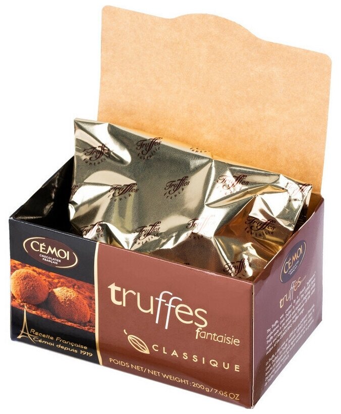 Шоколадные трюфели всегда являлись бриллиантом кондитерского искусства, символом утонченной роскоши. Удивительно нежный вкус несравнимых классических французских трюфелей Cemоi доставит вам настоящий праздник. Нежную тающую во рту кремовую текстуру трюфеля украшает тонкий аромат какао обсыпки.
