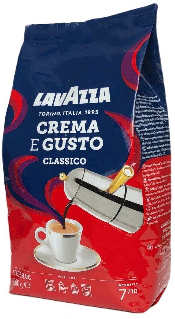 Кофе в зернах Lavazza Crema E Gusto Espresso 1кг потрясающий бленд арабики из Бразилии и робусты из Индии без всяких добавок. Именно зерна робусты делают напиток крепким, бодрящим, с густой пенкой и надолго заряжают энергией. Он обладает кремовым насыщенным вкусом и оставляет приятное послевкусие с легкими нотками ореха и шоколада. Попробовав его, хочется воскликнуть Perfecto. Особенности темная обжарка, умеренная интенсивность (7 из 10), пряный аромат. Этот натуральный кофе не сравнится с обычным растворимым или быстрорастворимым. Его можно варить в кофемашине или молоть и готовить в кофеварке, френч-прессе, турке. Lavazza Crema E Gusto Espresso идеален для приготовления эспрессо, американо, лунго, капучино, латте, мокачино. Его по достоинству оценят все, кто предпочитает как черный молотый кофе, так и более мягкий. Чтобы понизить крепость напитка и содержание кофеина, достаточно просто добавить молока. После вскрытия упаковки зерна надо хранить в герметичной таре.