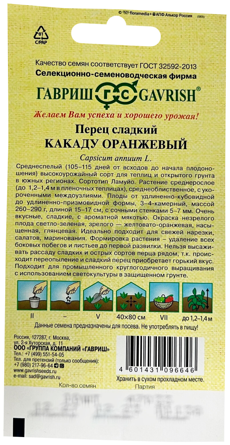 | Тип продукта | Семена овощных культур |
