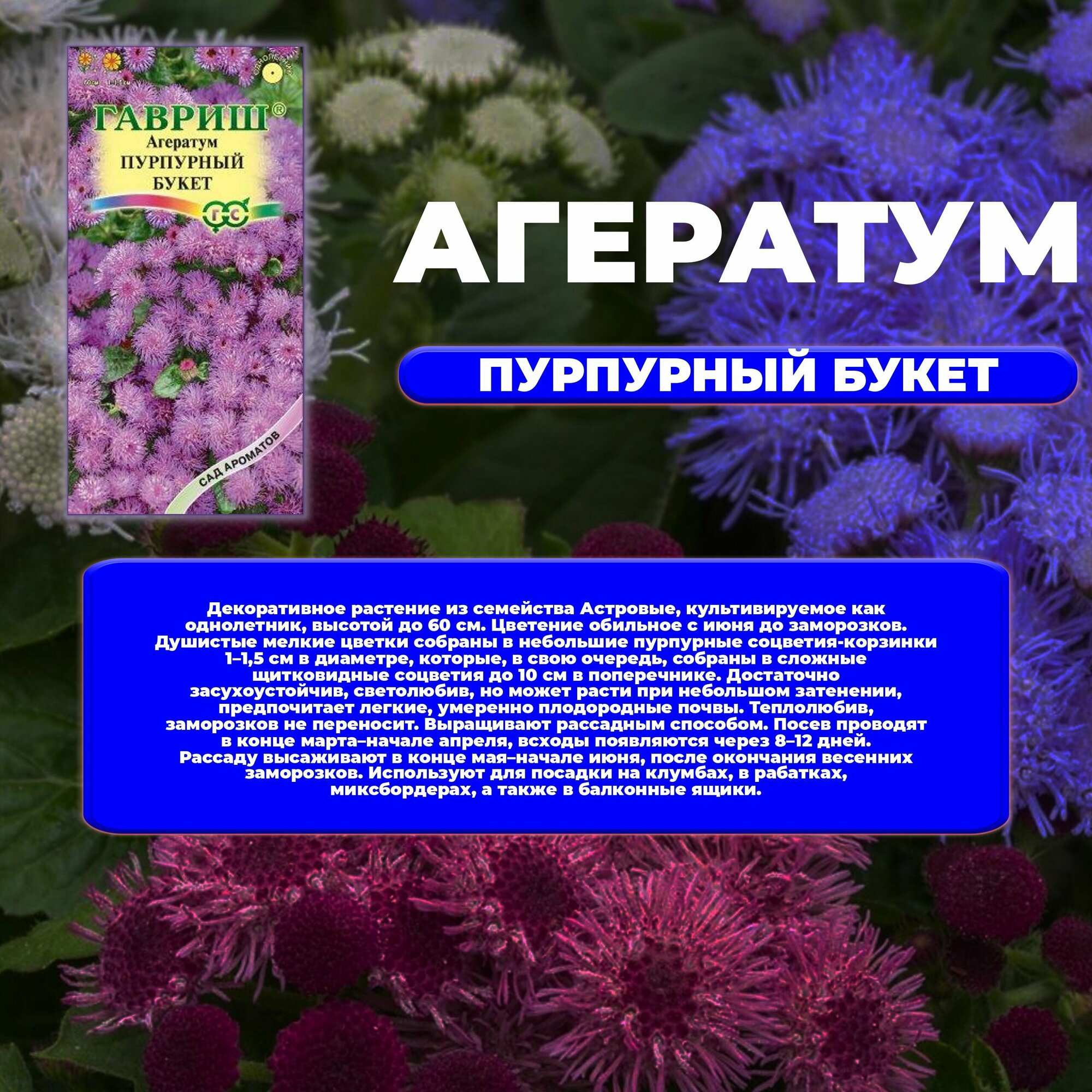 Семена агератум пурпурный бук 05 г Без бренда