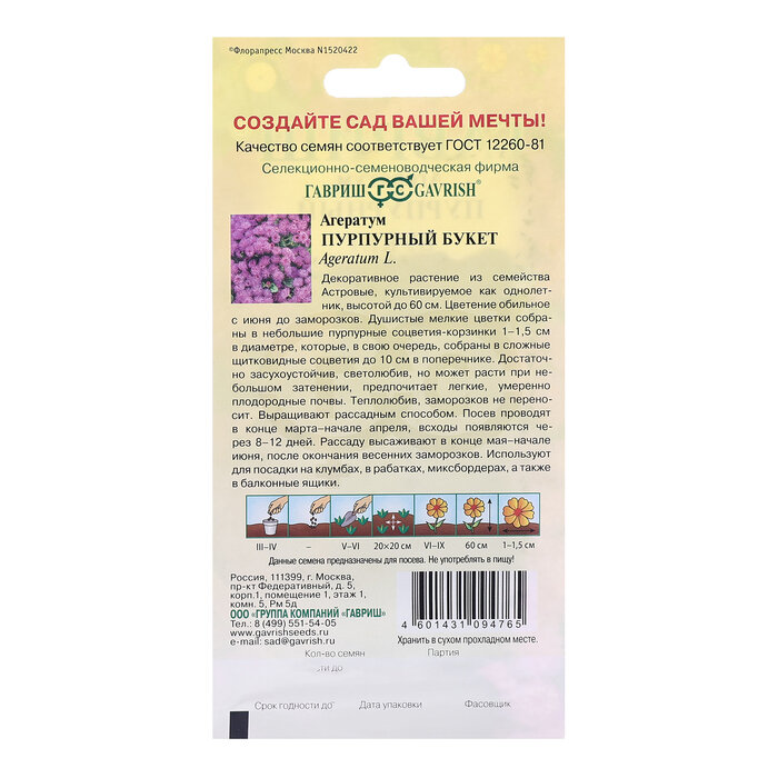 На сегодняшний день товар «Семена агератум пурпурный бук 05 г Без бренда» можно купить с кешбеком в 1 магазине: Яндекс.Маркет