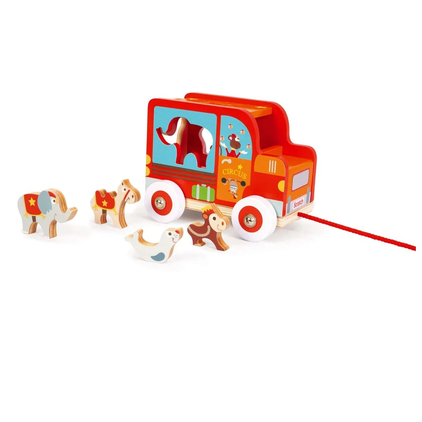 Погрузитесь в мир цирка с этим веселым цирковым фургоном. Поместите цирковых животных в фургон, пропустив их через нужный вход. Дерни за веревочку и отправляйся в путь! Откройте магнитную защелку сзади, позвольте животным выйти из фургона, и пусть шоу начнется! Часы веселья для маленьких цирковых артистов!