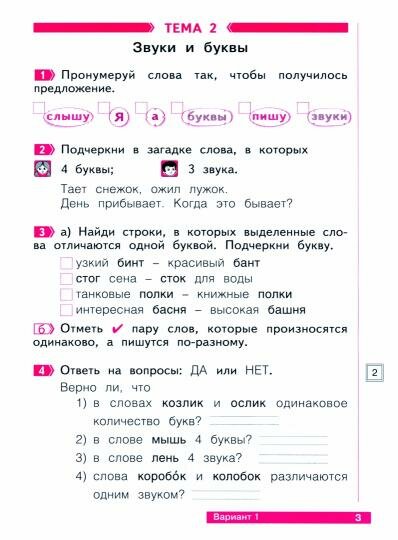 Тетрадь проверочных работ позволяет организовать тематический контроль на уроках русского языка во втором полугодии первого класса. Размещенные в тетради задания дают возможность не только определить успешность ребенка в освоении учебного материала, но и проследить за формированием метапредметных умений, таких как восприятие учебной задачи, навык работы с разными способами представления информации, контроль и оценка собственной деятельности.