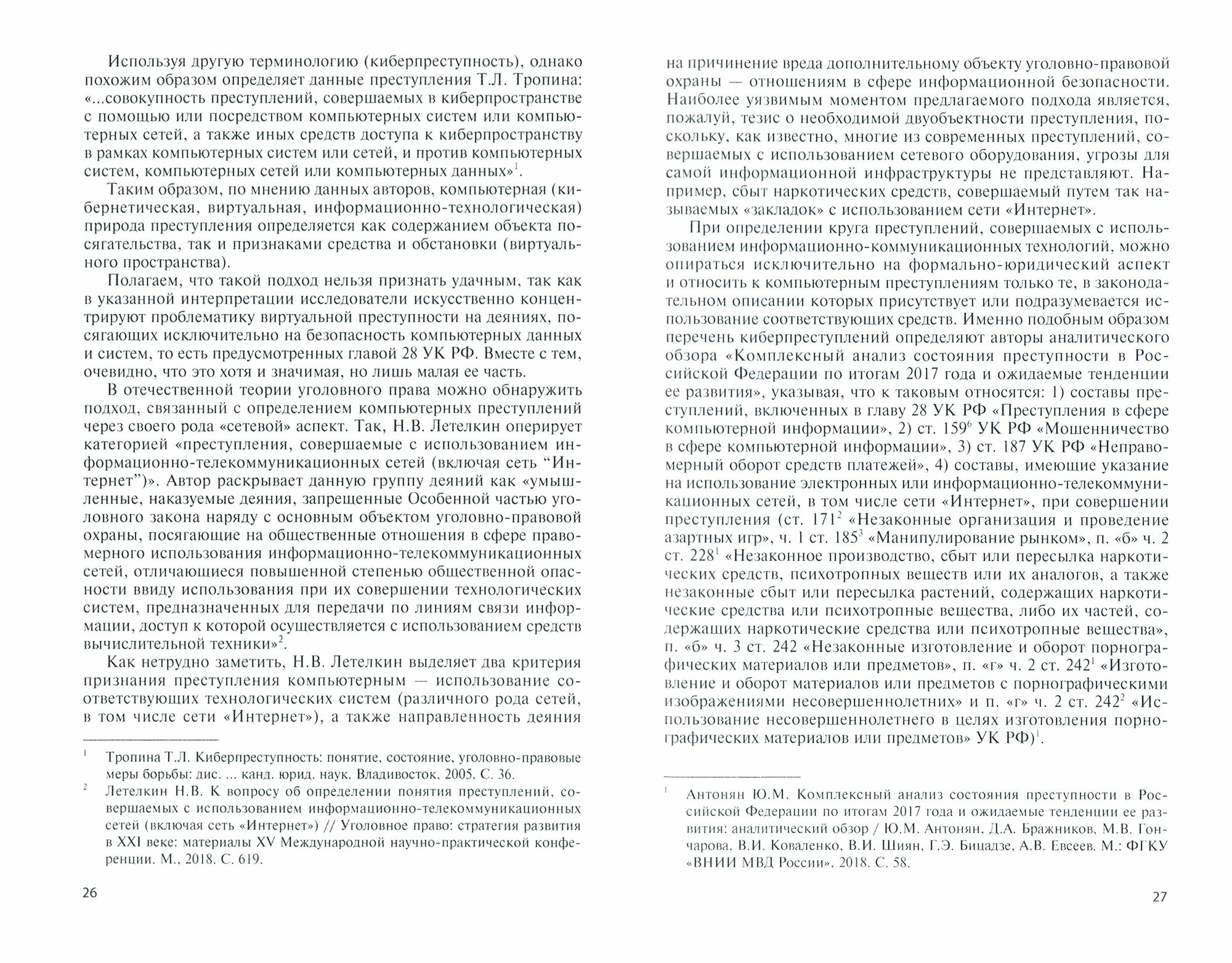 Монография посвящена комплексу теоретико-прикладных проблем приспосабливания отечественного механизма уголовно-правовой охраны к "цифровизации" преступности в условиях становления информационного общества. Наряду с общетеоретическими вопросами глубокому анализу подвергаются зарубежное уголовное законодательство и положения норм международного права. В работе представлена уточненная уголовно-правовая характеристика преступлений в сфере компьютерной информации, в том числе новеллы российского уголовного законодательства - неправомерного воздействия на критическую информационную инфраструктуру Российской Федерации (ст. 2741 УК РФ), разработаны предложения по дифференциации уголовной ответственности за посягательства на безопасность компьютерных данных и систем, выработаны научно обоснованные рекомендации по квалификации.