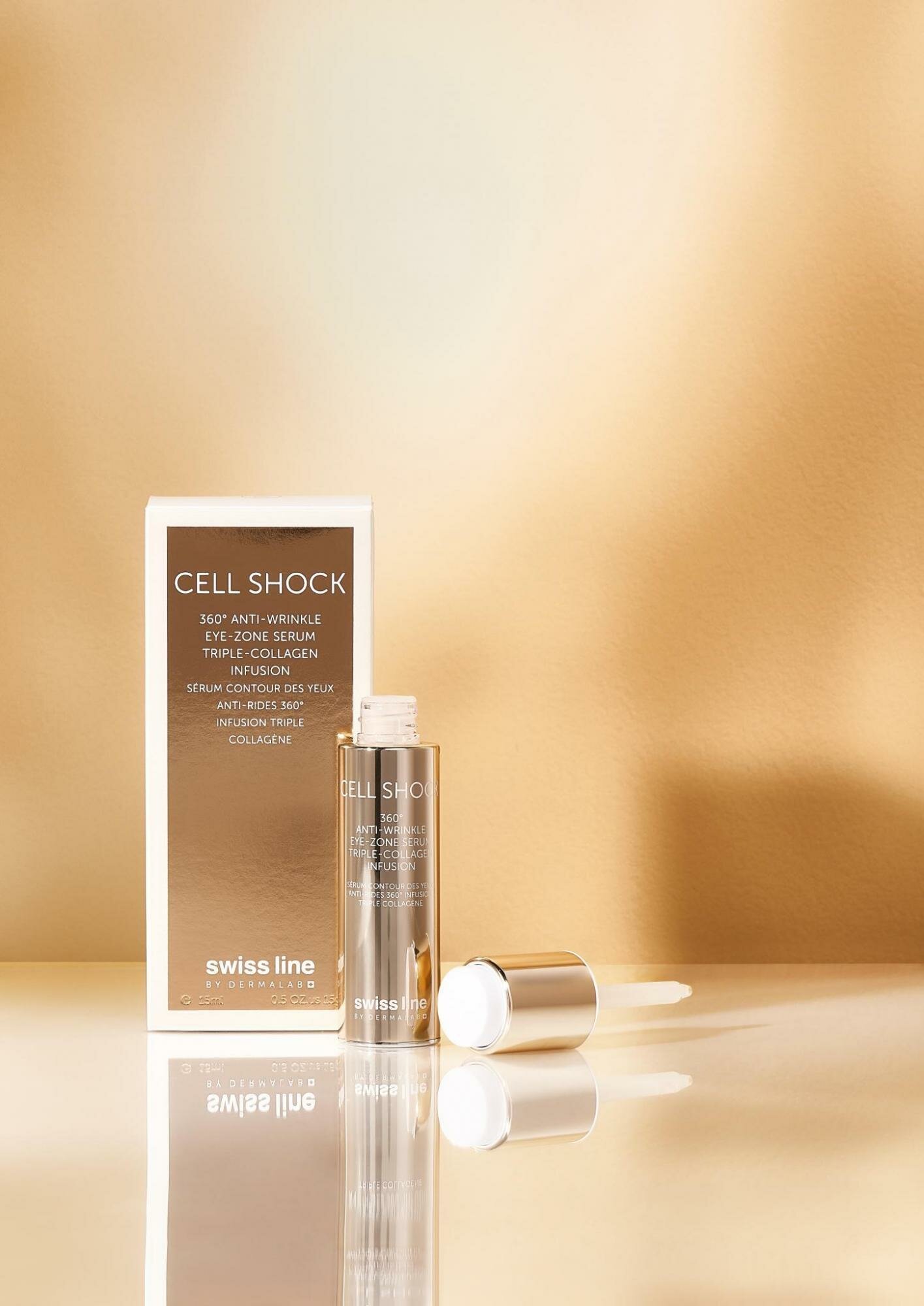 Сыворотка для глаз Swiss Line Cell Shock От морщин 360o 30 мл. Мгновенный лифтинг и эффект заполнения морщин обеспечивают моментальное преображение кожи вокруг глаз. Сыворотка устраняет темные круги, увлажняет и смягчает кожу, создавая комфортные ощущения. Использование этой сыворотки усиливает антивозрастное действие любого крема вокруг глаз.