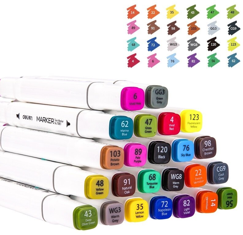 Набор маркеров для скетчинга Deli 24 цвет. двойной пишущий наконечник E70801-24/A