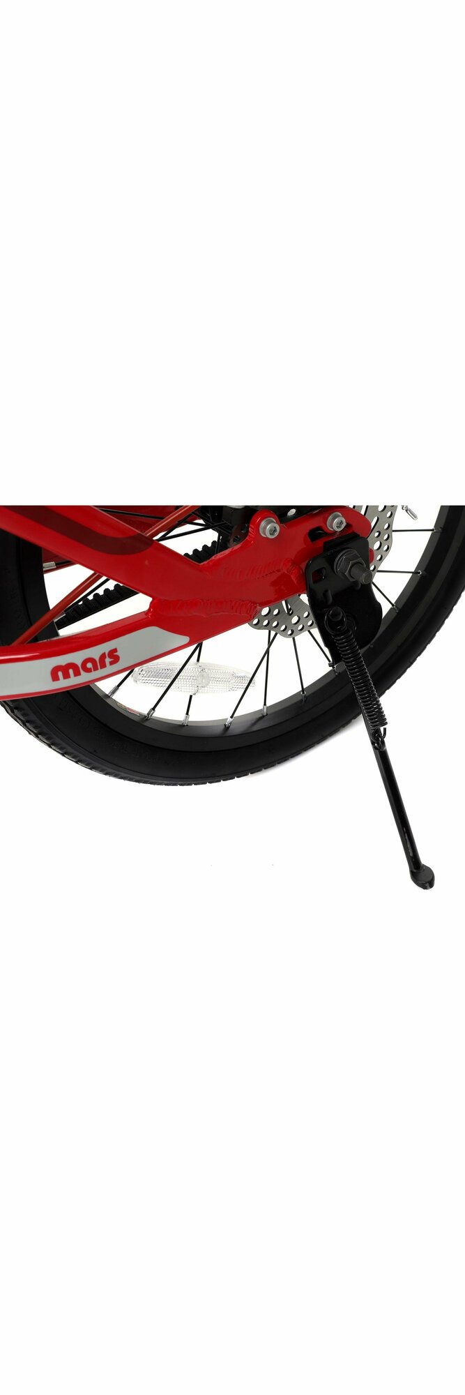 Модель оснащена рамой из алюминиевого сплава, более лёгкого в сравнении со сталью. Дисковые механические тормоза позволяют мгновенно останавливать велосипед в любой ситуации. Жёсткая алюминиевая вилка обеспечивает хорошую устойчивость и управляемость байка. Переключения скоростей не предусмотрено. Велосипед Royal Baby Mars 16 оснащен пластиковыми широкими педалями со стальной осью, колесами с покрышками Royal Baby 2,125".