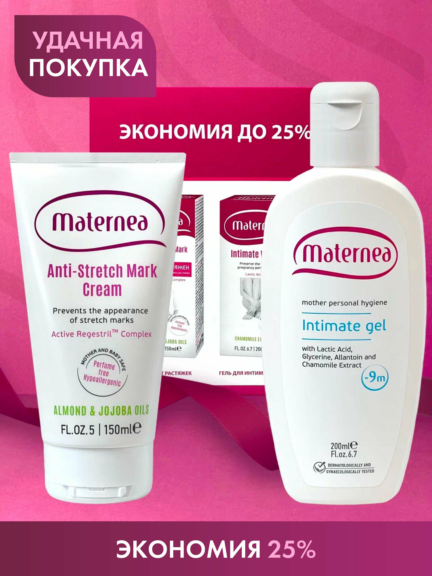 Набор Maternea Крем от растяжек 150 мл + Гель для интимной гигиены 200 мл Набор Крем от растяжек 150 мл + Гель для интимной гигиены 200 мл