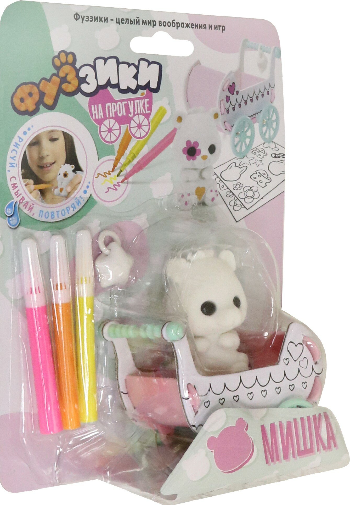 Фуззики - это милые питомцы, которых можно раскрашивать как тебе хочется! Фломастеры легко смываются водой, и ты можешь раскрашивать игрушки вновь и вновь, создавая каждый день новые образы для своего питомца. В наборе есть симпатичный медвежонок в прогулочной коляске, смывающиеся водой фломастеры и стикеры, чтобы украсить и персонализировать флокированного малыша и коляску. Фуззики! Целый мир воображения и игр!