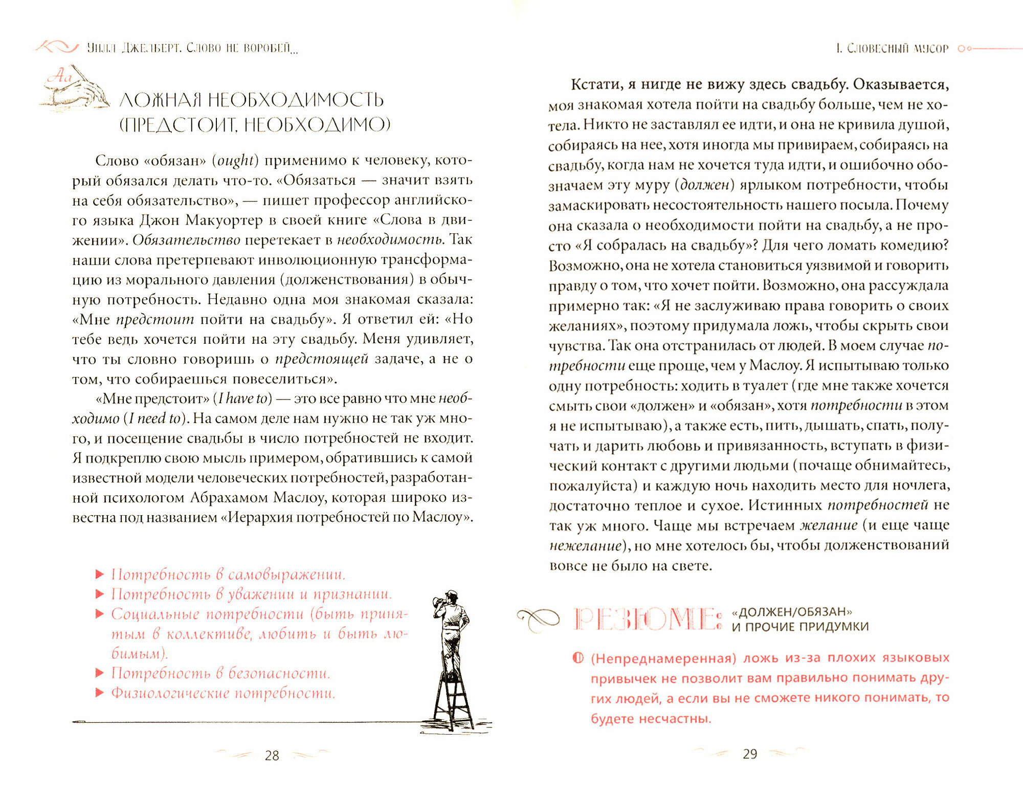 В этой книге писатель, переводчик и журналист Уилл Джелберт рассказывает, как очистить речь от словесного мусора и научиться точно выражать свои мысли — для установления глубоких связей с другими людьми. От того, как мы говорим, зависит впечатление, которое мы производим, — наши слова способны, как привлечь и заинтересовать окружающих, так и отпугнуть и насторожить их.