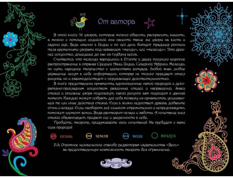 Вы можете раскрашивать и обводить орнаменты, придумывать свои узоры. Также рисунки и символы можно нанести на кисти и ладони рук с помощью индийской хны. Вышить любой понравившийся узор. Сделать оригинальный подарок, вставив в красивую рамку раскрашенный вами рисунок.