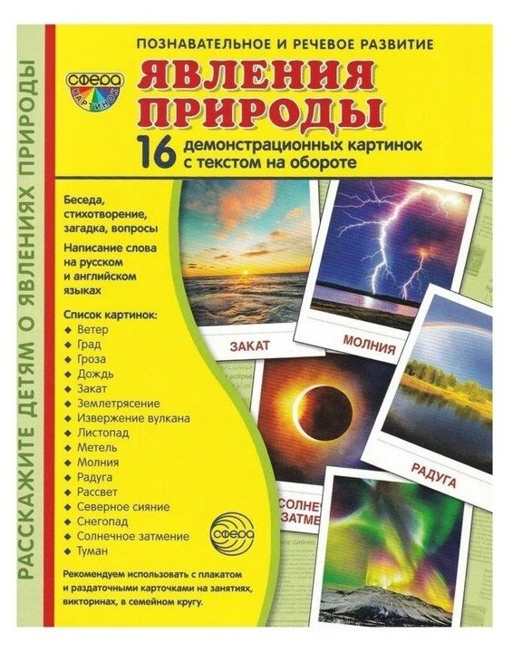 Демонстр. картинки Явления природы (173х220мм) (Цветкова Татьяна Владиславовна); Творческий центр Сфера Издательство, 2022