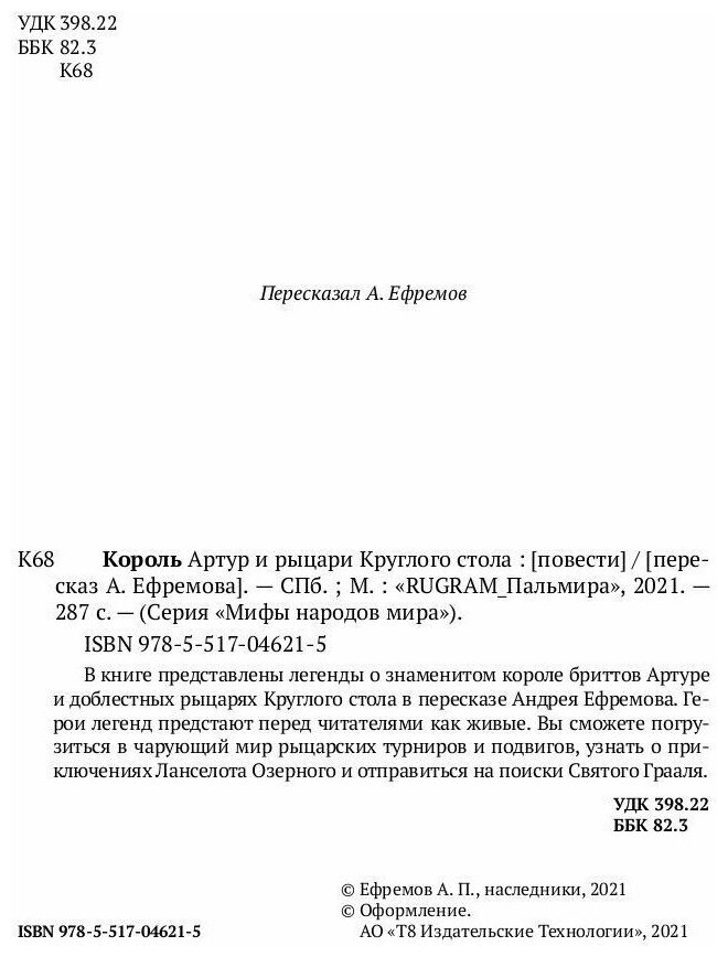 Король Артур и рыцари Круглого стола (Ефремов А. (пересказ)); RUGRAM_Publishing, 2021