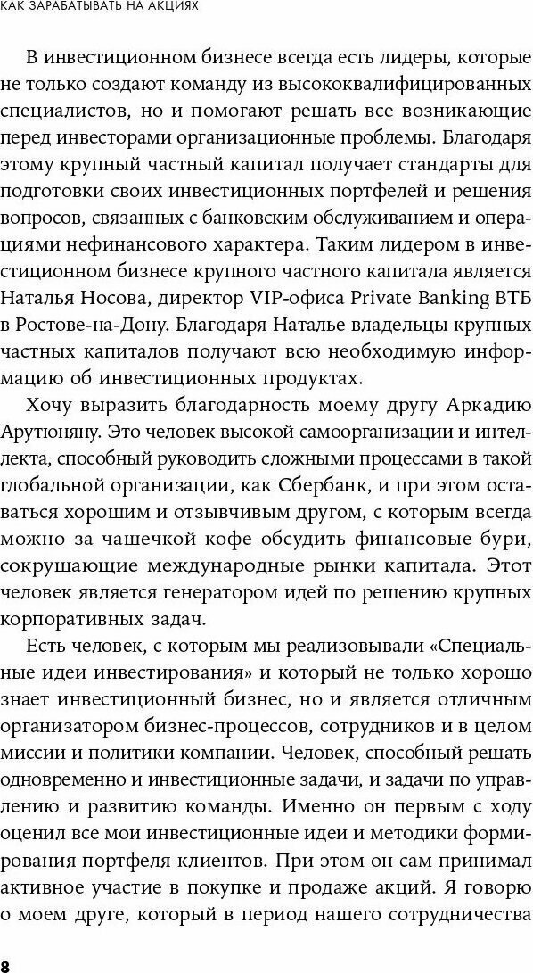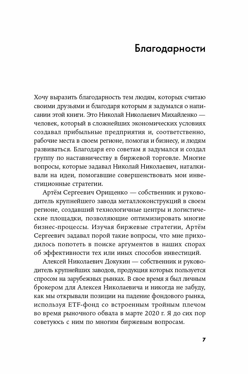 Прочитала книгу за 5 дней. Но я знаю, что буду возвращаться к ней снова и снова. Книга помогла мне уточнить пробелы в моём портфеле и поможет другим инвесторам грамотно составить портфель. Больше всего понравилась глава, где рассказывается, как рассчитать справедливую и будущую стоимость акций. Новое: спец идеи инвестирования, буду применять. Книга будет полезна всём начинающим инвесторам; а кто уже инвестирует, позволит эффективно управлять своим портфелем. Спасибо за труд автору А. Хачатряна.