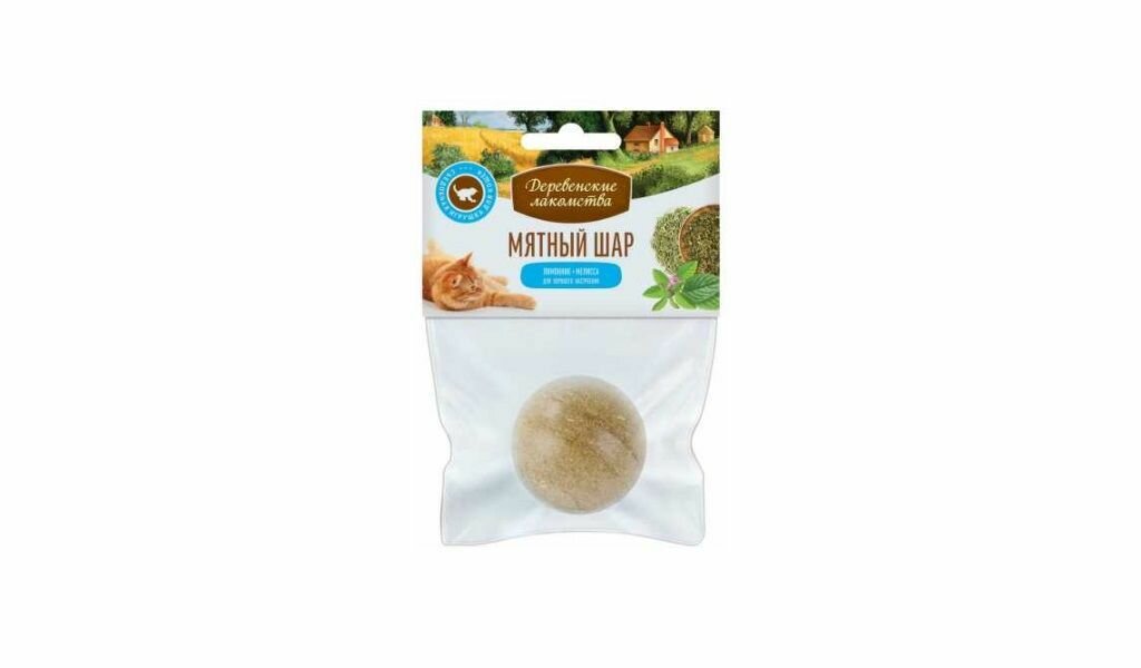 Сервис сравнения цен СкидкаГИД предлагает сравнить цены на товар «Лакомство для кошек Деревенские лакомства Мятный шар Лимонник и мелисса 22г»