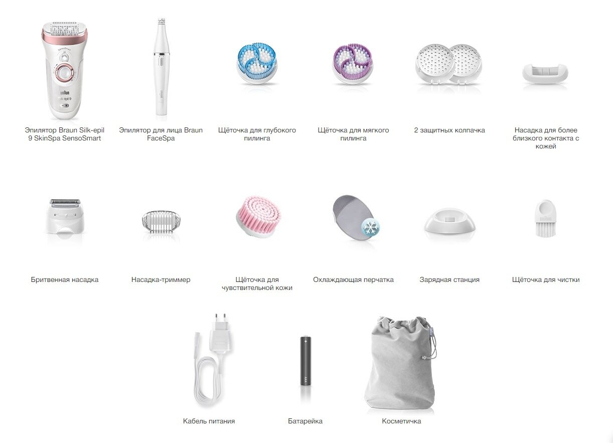 Премиум-набор для эпиляции и ухода за лицом и телом. Предназначен для пилинга, эпиляции, бритья, стайлинга, тонизирования, очищения и нанесения крема и макияжа.