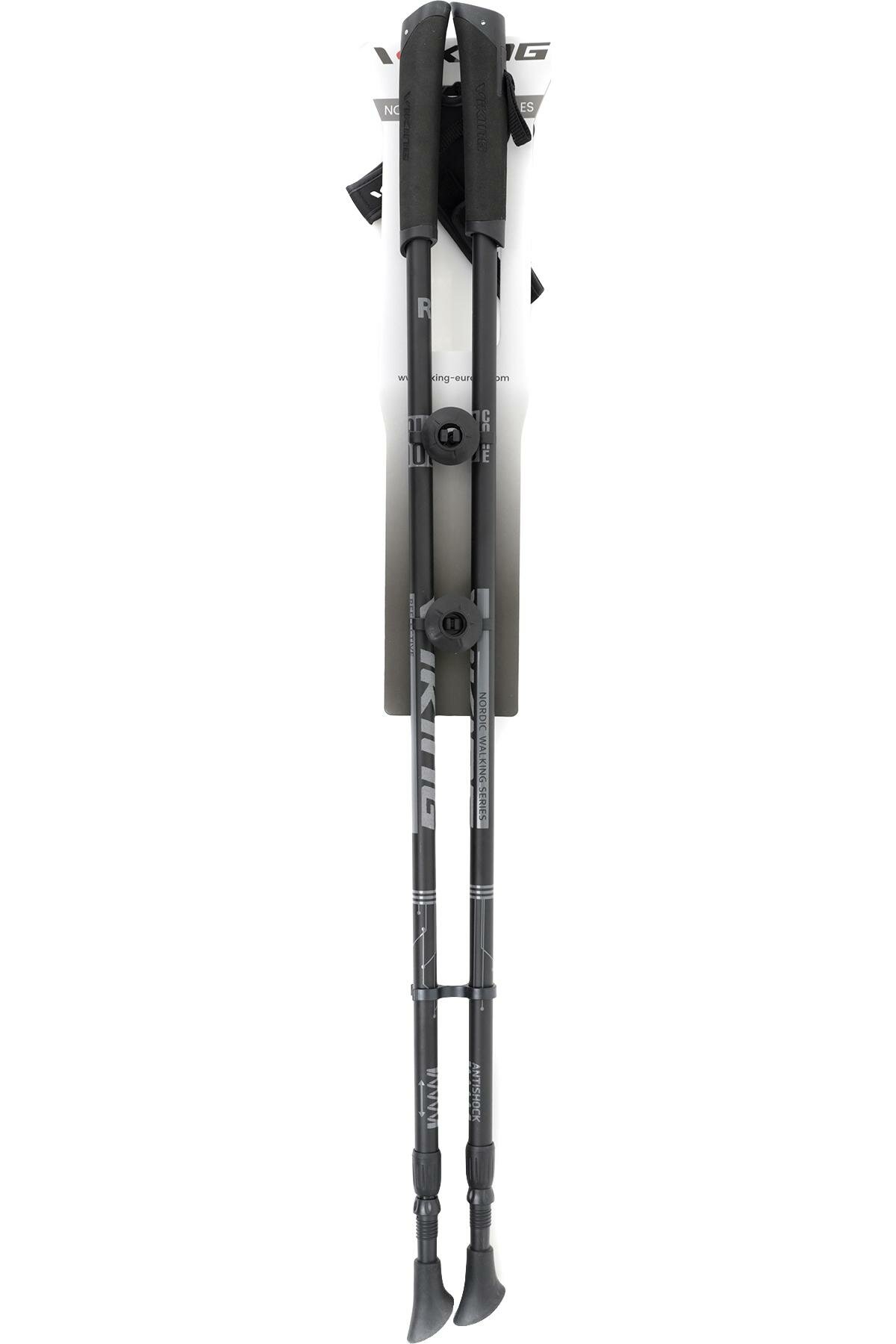 Палки для скандинавской ходьбы VIKING Valo Pro имеют двухсекционную конструкцию, благодаря чему их можно адаптировать под различный рост пользователей, а кроме того, удобно транспортировать в сложенном состоянии, так как они занимают меньше места, чем стандартные палки.