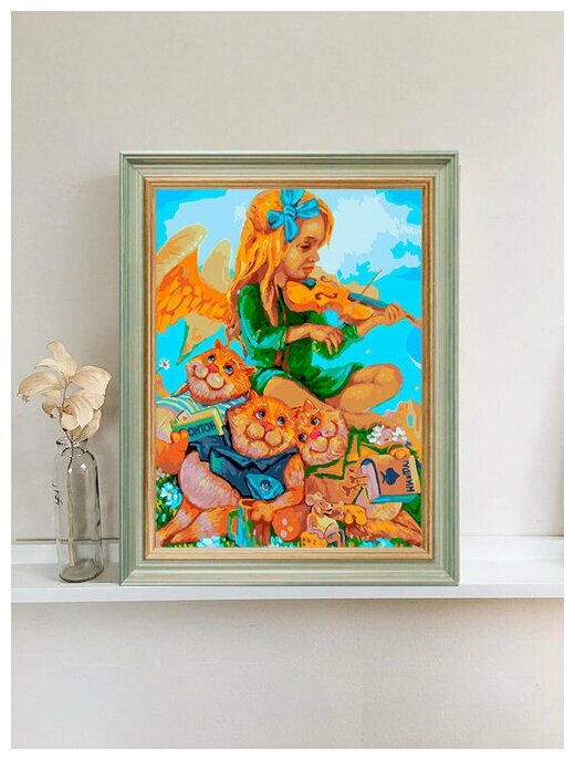 Набор для творчества Живопись на холсте: 458-AS Тайная жизнь Торговая марка Белоснежка представляет вам волшебный сюжет с ангелом, играющим на скрипке, и с благодарными слушателями котами и мышью.