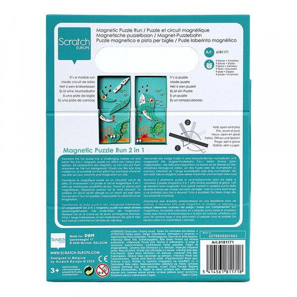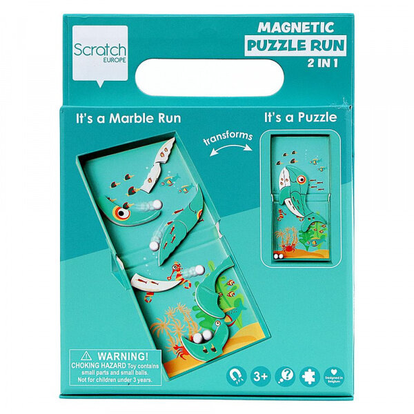 Превратите забавную головоломку в сложную гонку по мрамору и обратно! Магнитная головоломка 2 в 1 предлагает вам различные варианты игры. Все компоненты магнитные, поэтому вы можете разместить их в любом месте на веселом фоне. Хотите ли вы один длинный пробег по мрамору или пробег по мрамору, который раскалывается? Ты можешь есть все, что захочешь! Позвольте своему творчеству и воображению разгуляться.