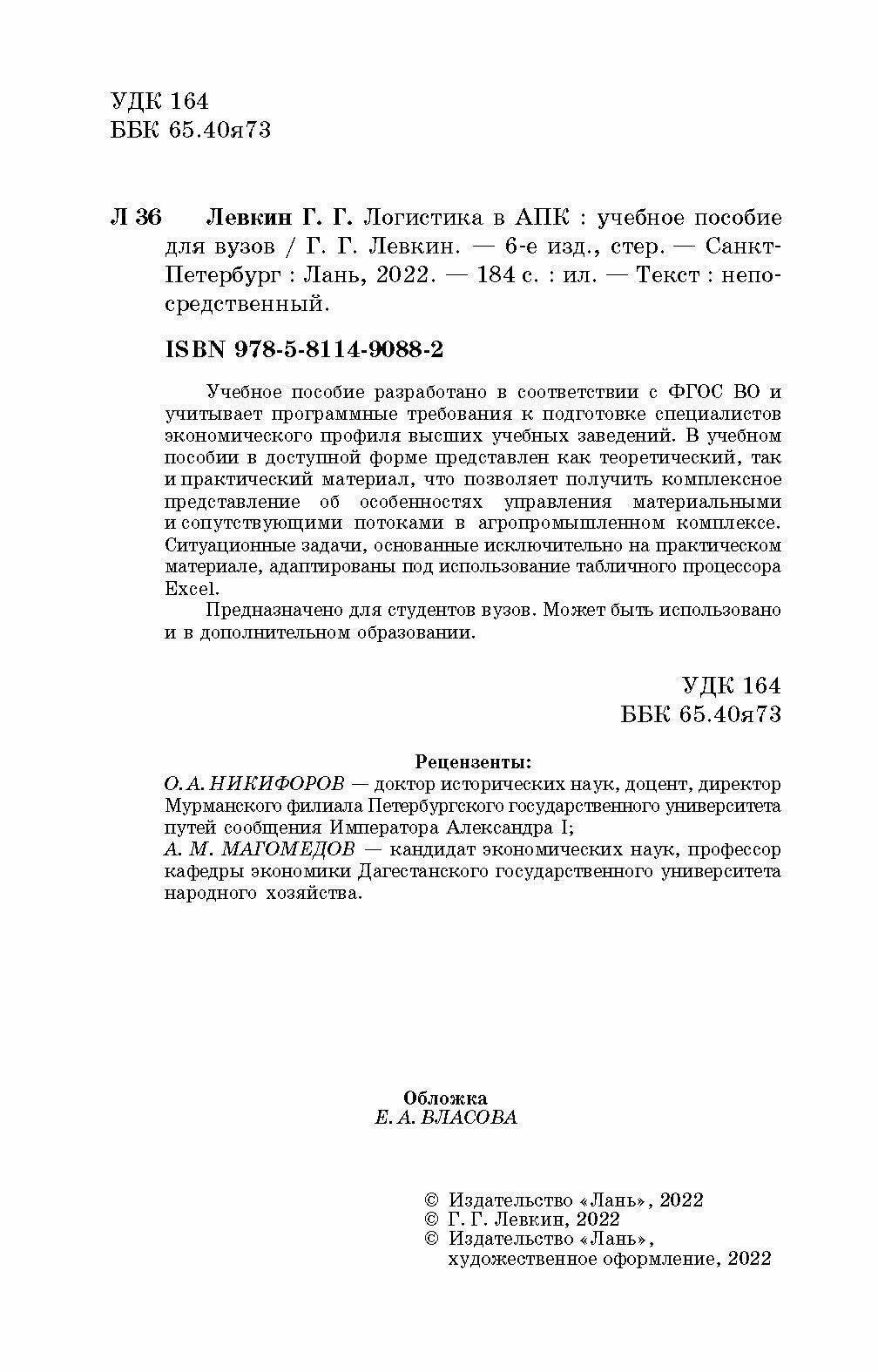 Книга: Логистика в АПК (Г. Г. Левкин); Издательство ЛАНЬ, 2022