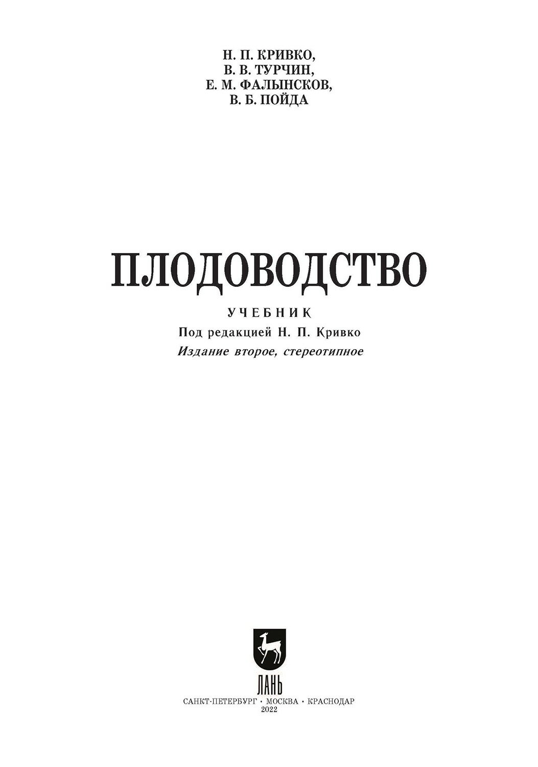 Книга: Плодоводство (Кривко Николай Павлович); Лань, 2022