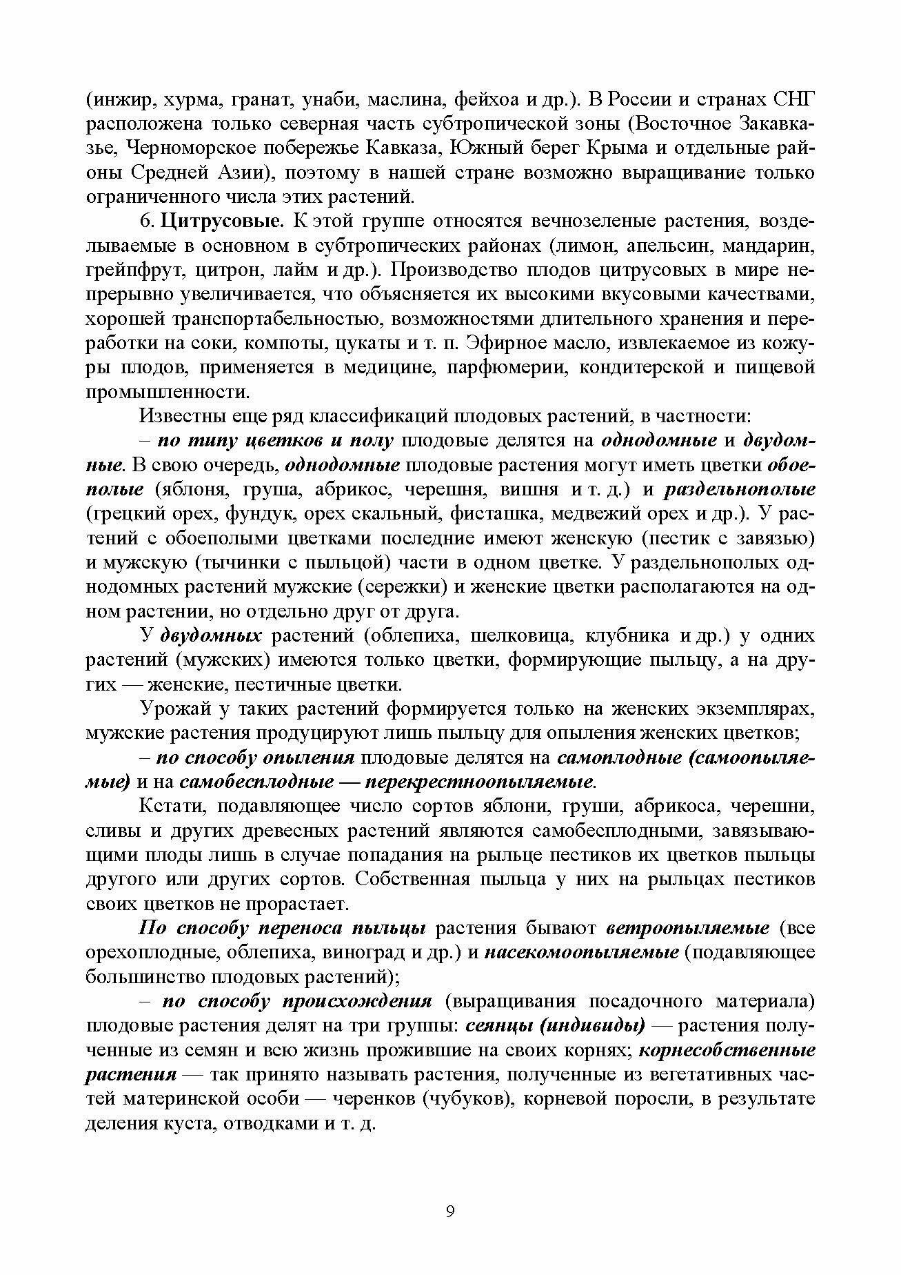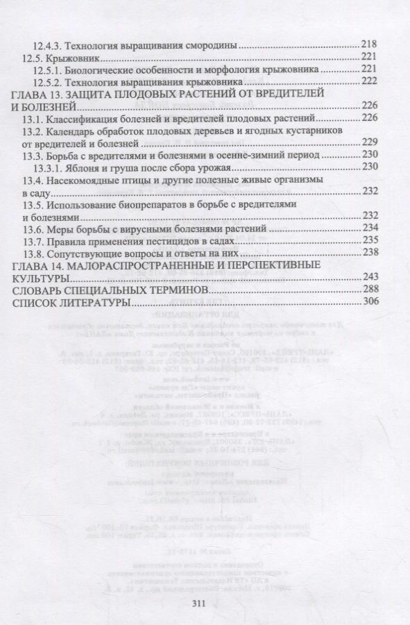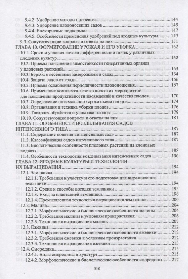 Рассмотрены в соответствии с программами подготовки агрономических кадров в системе СПО основы классификации и биологии плодовых растений, включая способы размножения и современные технологии выращивания посадочного материала. Изложены вопросы закладки сада, обрезки и формирования крон, ухода за деревьями и почвой в саду, освещены вопросы формирования и уборки урожая. Освещены особенности технологии садов интенсивного типа. Впервые в учебнике по плодоводству приведены основные сведения по защите плодовых и ягодных растений от вредителей и болезней. Отдельная глава посвящена малораспространенным перспективным культурам. Часть материала изложена в форме наиболее часто возникающих у обучающихся и производителей плодовой продукции практических вопросов и ответов на них.