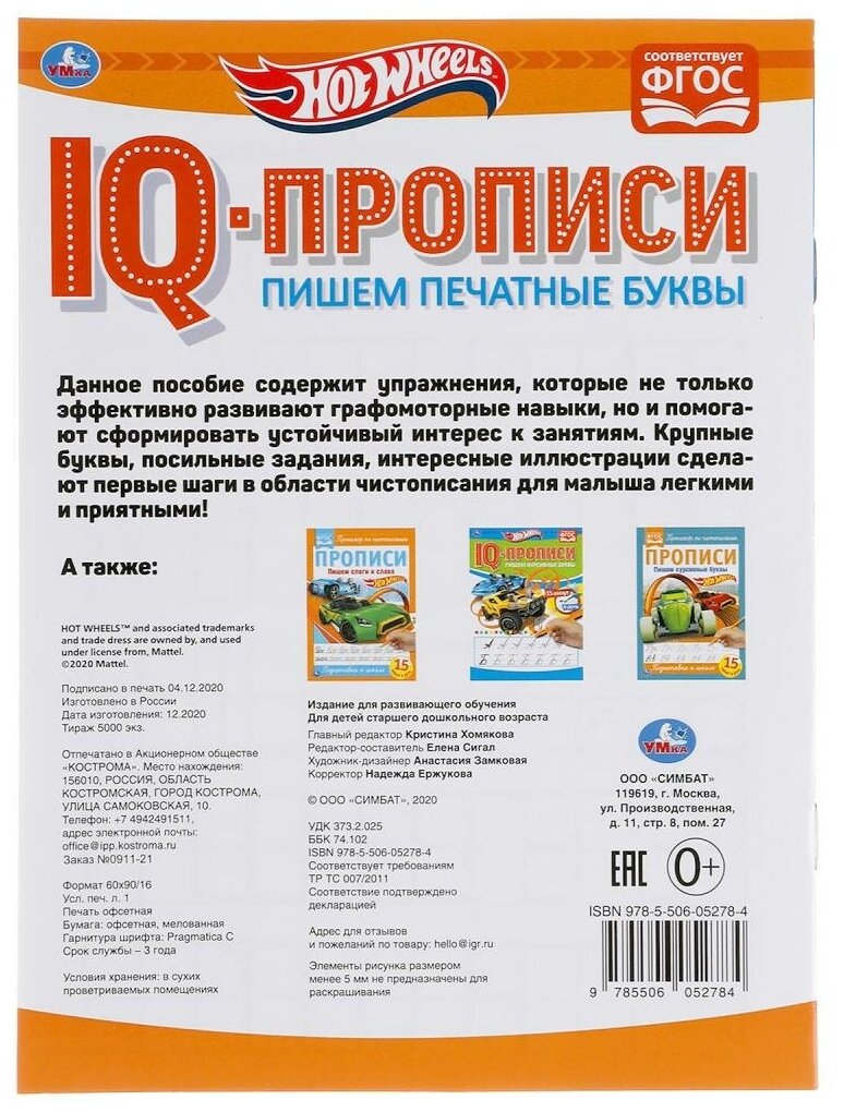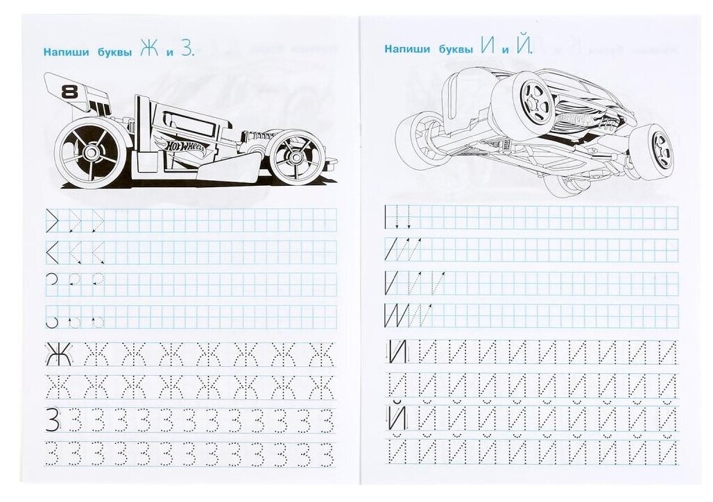 IQ-прописи «Hot Wheels. Пишем печатные буквы» ТМ «УМка» - отличный вариант для маленького любознайки потренироваться в чистописании: