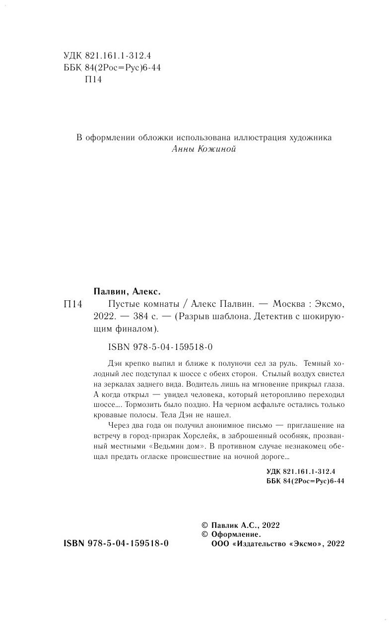 Книга: Пустые комнаты (Алекс Палвин); Эксмо, Редакция 1, 2022