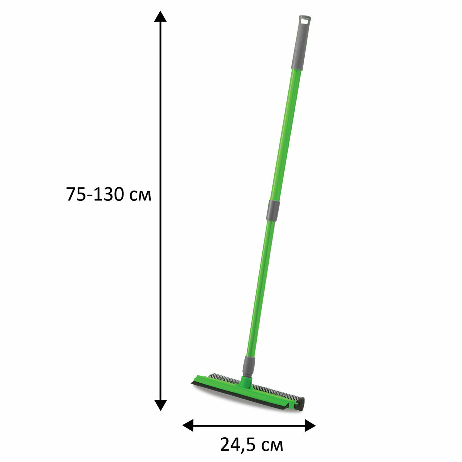 Прекрасно снимает воду с плоских поверхностей, в наборе телескопическая ручка, с помощью которой можно вымыть даже высокие окна, удобна в применении и позволяет очень легко мыть окна и стекло.
