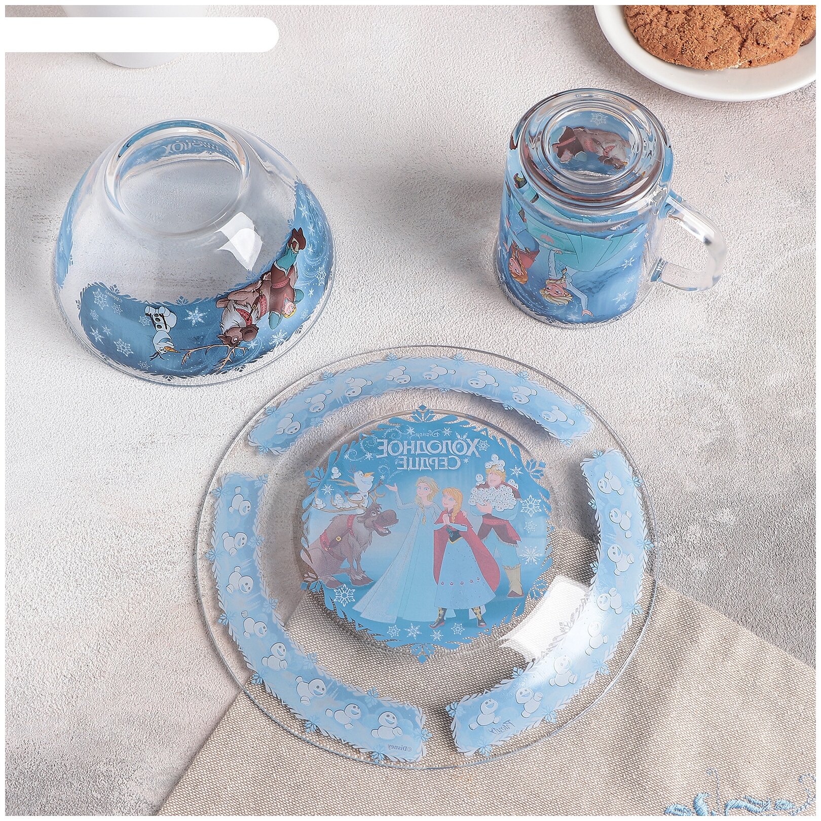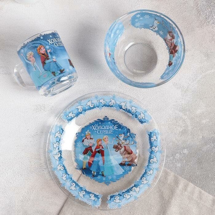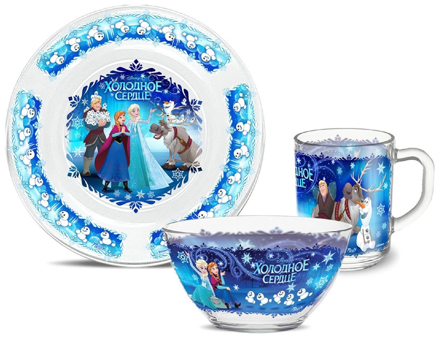 Набор детской посуды «Холодное сердце» порадует маленького поклонника мультфильмов.В комплект входит 3 предмета:тарелочка диаметром 20 см, объёмом 200 мл;салатник объёмом 130 мл;кружка объёмом 200 мл.Посуда выполнена из качественного стекла, декорирована современными безопасными красками.Изделия нельзя использовать в СВЧ-печи и мыть в посудомоечной машине.Детская посуда разработана специально для малышей, она удобна и безопасна. А красочное оформление набора станет залогом хорошего настроения и аппетита вашего ребёнка.