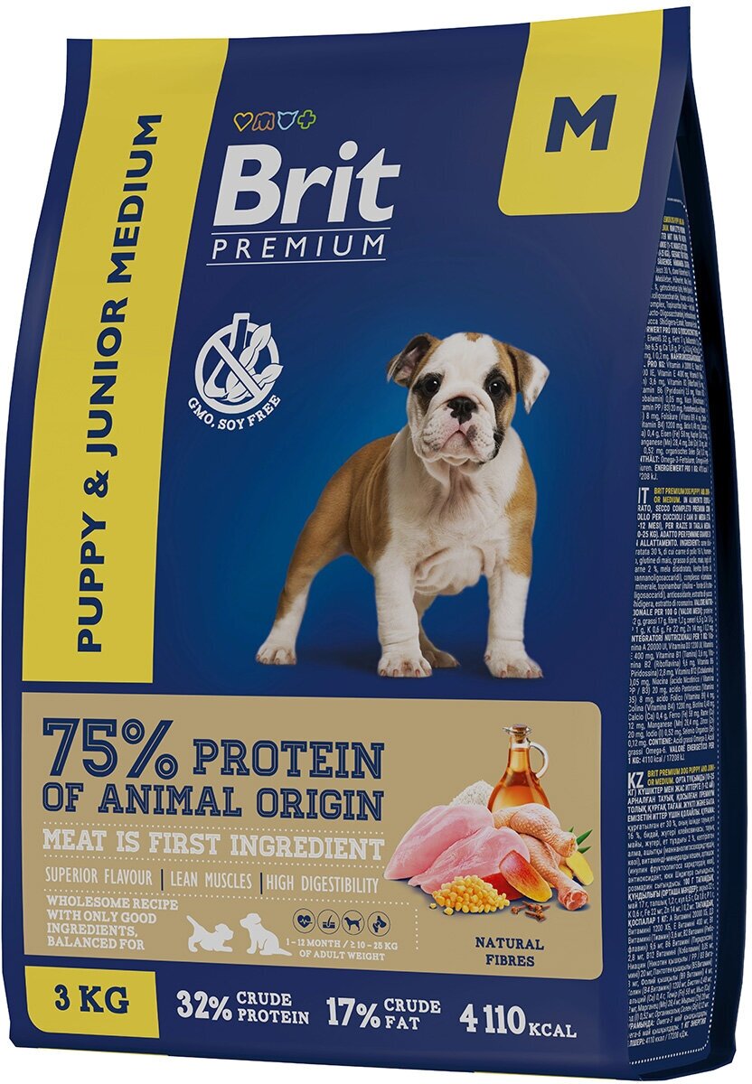 - Сухой корм Brit Premium Dog Junior M для щенков и молодых собак средних пород с мясом курицы