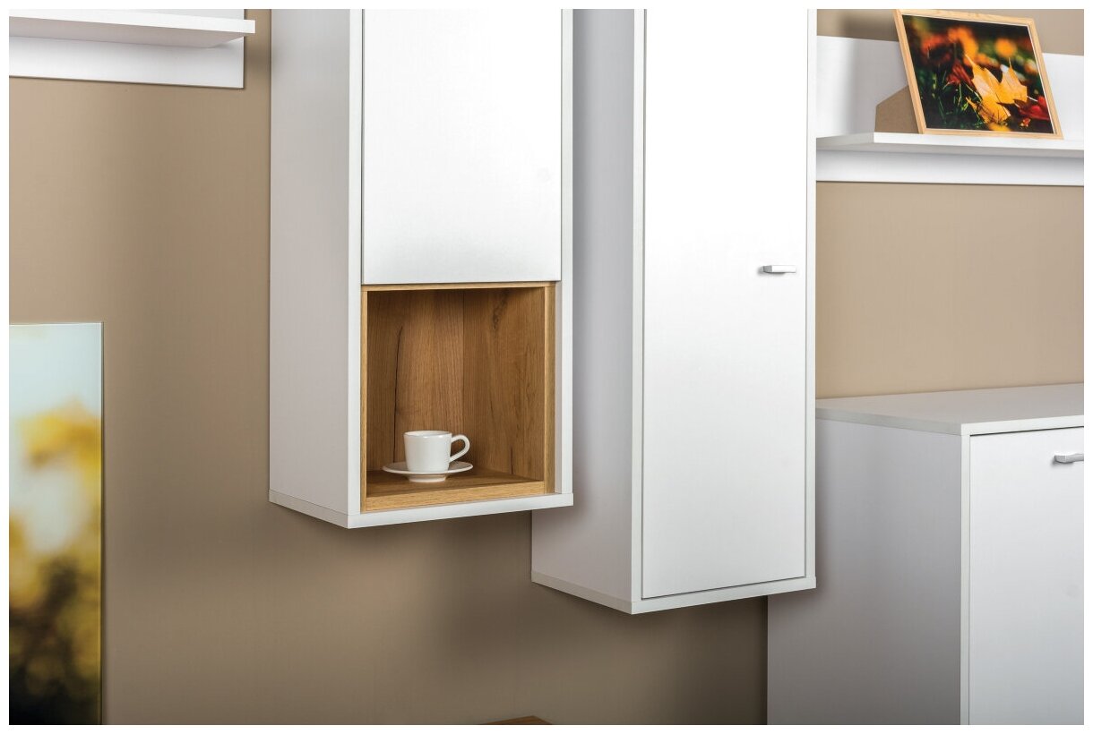 Полка гостиная - изящная, белоснежная полка - смотрится красиво и стильно, непременно станет украшением вашего интерьера.Широкая, открытая полка поможет расставить акценты и разнообразить цветовую гамму гостиной калейдоскопом размещённого декора.На полке хорошо будут смотреться предметы интереьера и ваши семейные фото.Полка гостиная - модуль из набора мебели для гостиной .В производстве мебели использовались только высококачественные материалы и фурнитуры.Корпуса и фасады мебели выполнены из экологически чистой ламинированной ДСП 16 мм, лицевая фурнитура - ABS пластик, цвет сатин.Мебель поставляется в разобранном виде, упакованная в гофрокартон, с комплектом фурнитуры и инструкцией по сборке.Размер полки (ШхГхВ): 120х20х24 см.Производитель - Российская фабрика мебели Моби.