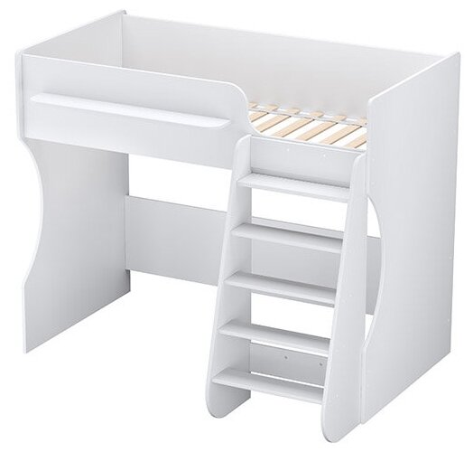 Практичное решение для обустройства детской, позволяющее организовать комфортное место для сна и оптимально использовать высоту помещения.Помогает оставить максимум свободного места в комнате для игр, учебы или для еще одного спального места.Кровать выполнена в современном дизайне и универсальном белом цвете.Удобное спальное место размером 160 х 80 см имеет реечное ортопедическое основание, что гарантирует правильное развитие позвоночника ребенка.Высокие бортики по всему периметру предотвращают падение, а скругленные углы обеспечивают максимальную безопасность и во время сна, и во время активностей.Надежная конструкция лестницы имеет округлые поручни и широкие ступени.Лестница может быть установлена как с левой, так и с правой стороны кровати.Удобная полочка сверху позволяет разместить необходимые предметы рядом со спальным местом.Размер кровати общий (ДхШхВ), см: 164,2х124х135,7Размер матраса, см: 160х80
