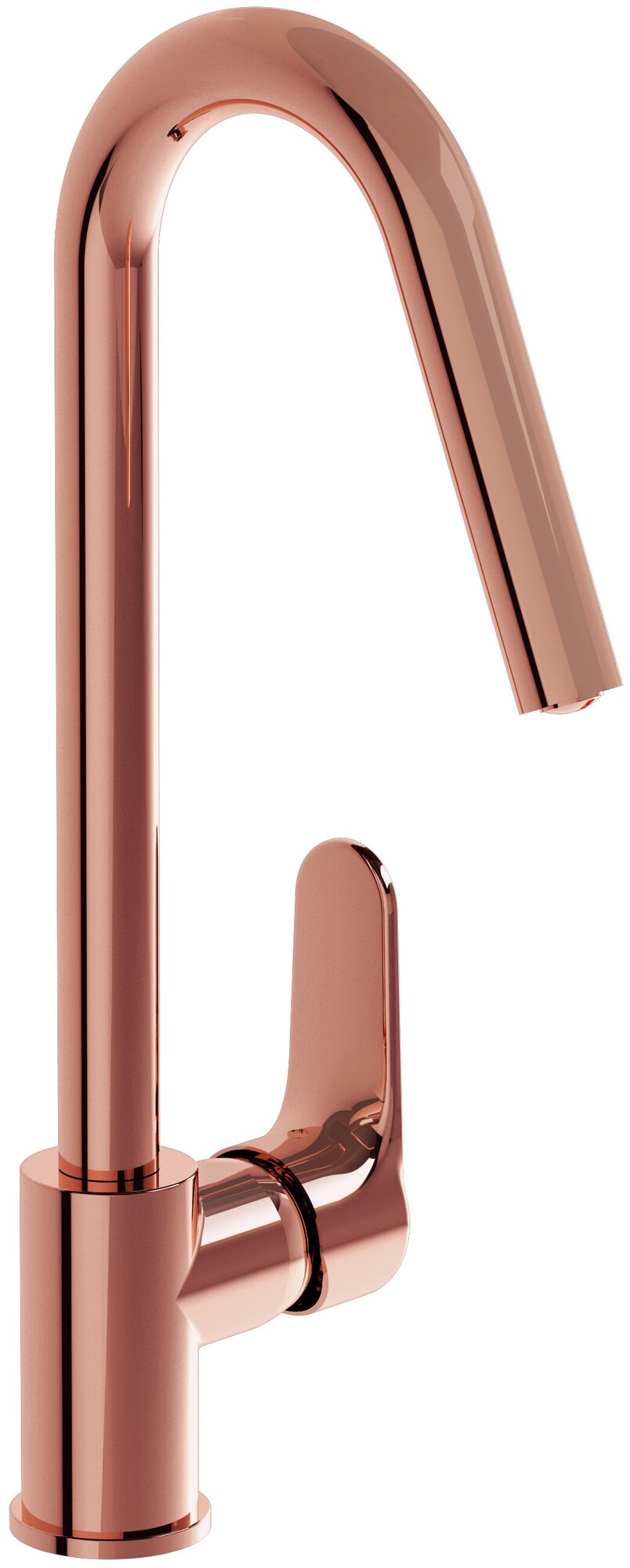 Смеситель Root Round для кухни, цвет медный. Материал: латунь. Механизм: керамический картридж. Управление: однорычажное. Излив: поворотный. Стандарт подводки: G 3/8. Аэратор. Гибкая подводка. Ограничение температуры. Экономия расхода воды. Корпус устойчив к агрессивной среде.