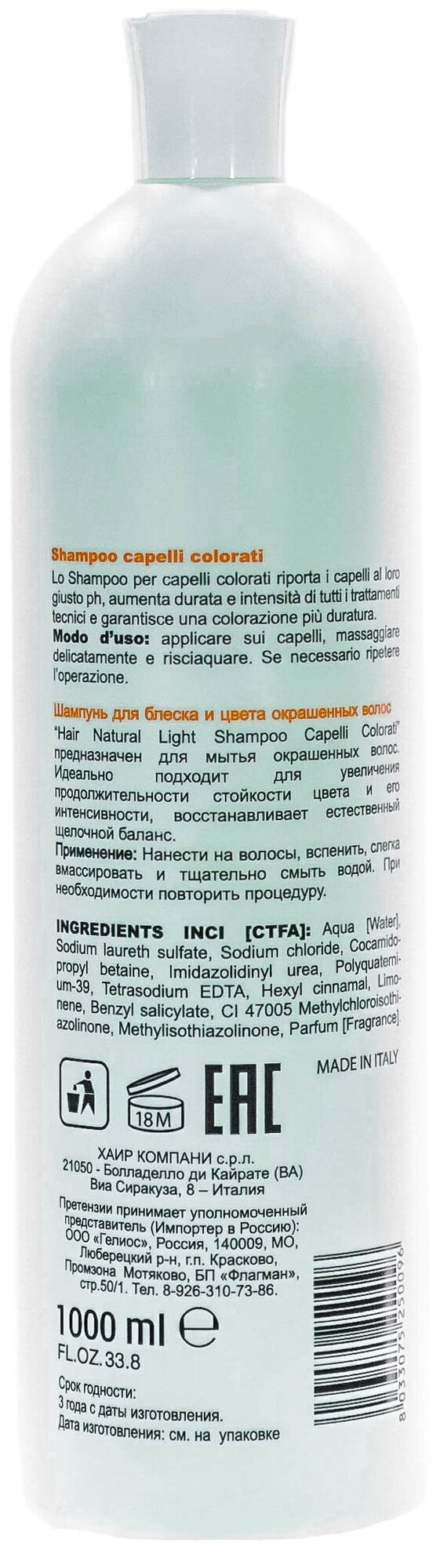 На сегодняшний день товар «Hair Company Professional Шампунь для блеска и цвета окрашенных волос Capelli Colorati 1000 мл (Hair Company Professional ) (HC250096)» можно купить с кешбеком в 1 магазине: Яндекс.Маркет