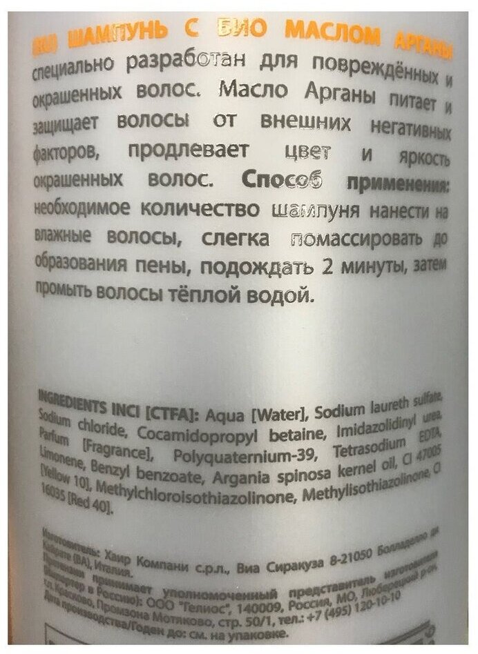 Специальный шампунь линии bio argan. Разработан для борьбы с ломкостью и обезвоживанием повреждённых и окрашенных волос. В составе формулы масла Арганы.