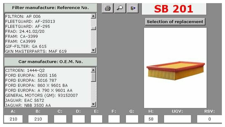 ОЕМ номераCITROEN 1444-Q2FORD 5016 787FORD 860 X 9601 BAFORD A 790 X 9601 AAFORD 5005 156General Motors 93152007JAGUAR NBB 3500 AAJAGUAR EAC 5672LADA (+ Chevrolet Niva) 2112-1109080-04LADA (+ Chevrolet Niva) 2108-0110-901-000LADA (+ Chevrolet Niva) 2108-0110-901LADA (+ Chevrolet Niva) 2108-0110-901-1LADA (+ Chevrolet Niva) 2112-1109-080-01PORSCHE 021.129.620STILL 524560VOLVO 1257305VOLVO 1328047VOLVO 1328047-4VW 027 129 620VW 021 129 620VW 021 129 620 DWARTBURG 91 18 002 460Ссылочные номераALCO MD-432ALCO MD-9330ALCO MD-9432AP FILTERS AP 3316AP FILTERS APP 3316 AAP LOCKHEED LK-3316AP LOCKHEED LK-3317ARMAFILT P-213/213.0Acd PC 380BALDWIN PA-2208BEHR THERMOT-TRONIK 741606Bosch 0 986 AF2 105Bosch 1 457 429 061Bosch 1 457 429 961Bosch 9 457 233 150CHAMP AF 295CHAMP AF 298CHAMP / CHAMP INTERNATIONAL AF 295CHAMP / CHAMP INTERNATIONAL AF 298CHAMP / CHAMP INTERNATIONAL AP 16CHAMP / CHAMP INTERNATIONAL AP 188CLEAN FILTER MA 435COOPERS AG 584CROSLAND 729Champion U 505DELPHI AF0066DENCKERMANN A140027DONIT FILTER 41.40.08FEBI 01510FEBI 1510FIAAM PA 7000FILTRAK C 815FILTRAK C 830FILTRON AP 006FLEET GUARD AF-25013FLEET GUARD AF-295FRAD 24.41.02/20FRAM CA-3399GIF-FILTER GA 615GUD FILTERS AG 584HALFORDS HAF263HJS 5005 156HJS 5016 787HJS 860 X 9601 BAHJS A 790 X 9601 AAHengst E 22 LINTERFIL FA-3399Knecht AG 55/1Kolbenschmidt 059-APLautrette EL 3178Lautrette EL 3207Lautrette ELP 3178Lautrette ELP 3493M-Filter MA 6696M-Filter MAP 6696MANN C 22 117MANN C 22 117/1MANN C 22 117/2MAPCO 60130MAPCO 60370MAPCO 60730MFI C 22 117MIGHTY A 31153MOTAQUIP AAPCO VFA 321MOTAQUIP AAPCO VFA 501Mahle / Knecht LX 220Mahle / Knecht LX 470Monark 30 780 078Motorcraft EFA 243ORTURBO PH 210.58 DP. B. R. AI-5006PERMATIC (MECAFILTER) ELP3178PERMATIC (MECAFILTER) FA 1607PROMES AP 2115PUROLATOR A 31153PUROLATOR A 37035PUROLATOR A 37153PUROLATOR PM-1153Quinton Hazell QAF 379RYCO A297SAVARA 9.23.315.17SAVARA SA 315SCHUPP / SF FILTER PA 7700SOFIMA S 0730 ASOFIMA S 3925 ASPIDAN MAF 619TECALEMIT B 379TECNECO AR 370 PMTJ FILTERS B 379Tecnocar A 370Teho 2230Teho 230Teho 2578UFI 30 835 00UFI 30 925 00UNIPART GFE 1110UNIPART GFE 2048URO 1-13559Unico AE 2159Unico AE 2159/1Unico AE 2161Vaico 10-0602WEGA FAP 4801WIX 46025WIX 46103WIX (EUROPE) WA6168WYTWORNIA FILTROW PZL WA50-440