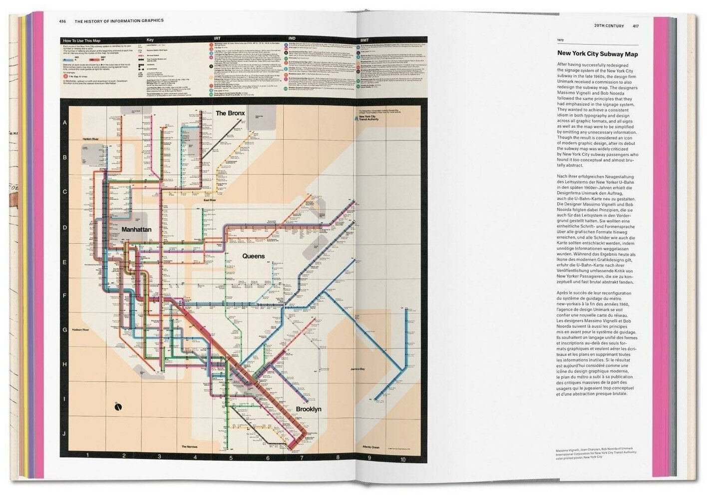 Multilingual Edition: English, French, German In the age of big data and digital distribution, when news travel ever further and faster and media outlets compete for a fleeting slice of online attention, information graphics have swept center stage. At once nuanced and neat, they distill abstract ideas, complex statistics, and cutting-edge discoveries into succinct, compelling, and masterful designs. Cartographers, programmers, statisticians, designers, scientists, and journalists have developed a new field of expertise in visualizing knowledge. This XL-sized compendium explores the history of data graphics from the Middle Ages right through to the digital era. Curated by Sandra Rendgen, some 400 milestones span astronomy, cartography, zoology, technology, and beyond. Across medieval manuscripts and parchment rolls, elaborate maps, splendid popular atlasses, and early computer-based information design, we systematically break down each work’s historical context, including such highlights as Martin WaldseemuЁller’s famous world map, the meticulous nature studies of Ernst Haeckel, and many unknown treasures. Hot on the heels of the best-selling Information Graphics and Understanding the World, this third volume fills the gap as an unprecedented reference book for data freaks, designers, historians, and anyone thirsty for knowledge. An enthralling exploration into the teachings, research, and lives of generations past.