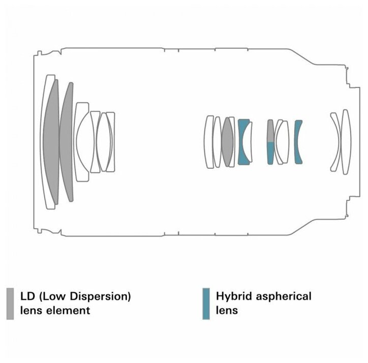 | Конструкция объектива | 19 элементов в 15 группах (3 асферических, 4 с низкой дисперсией LD) |