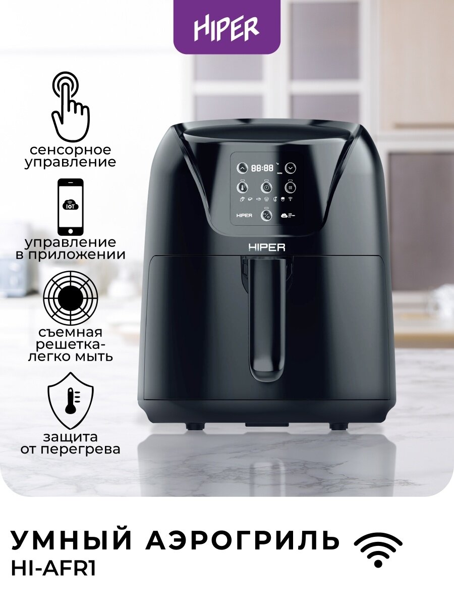 Сервис сравнения цен СкидкаГИД предлагает сравнить цены на товар «Умный аэрогриль HIPER IoT Air Fryer F1 Black»