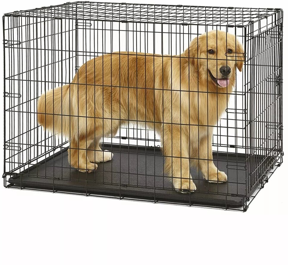 - Dog-Inn 120, размер клетки 123.8 x 76.2 x h 81.2 см, идеальна для очень крупных собак, взрослый вес которых до 50 кг, 71 см в высоту и 91 см в длину