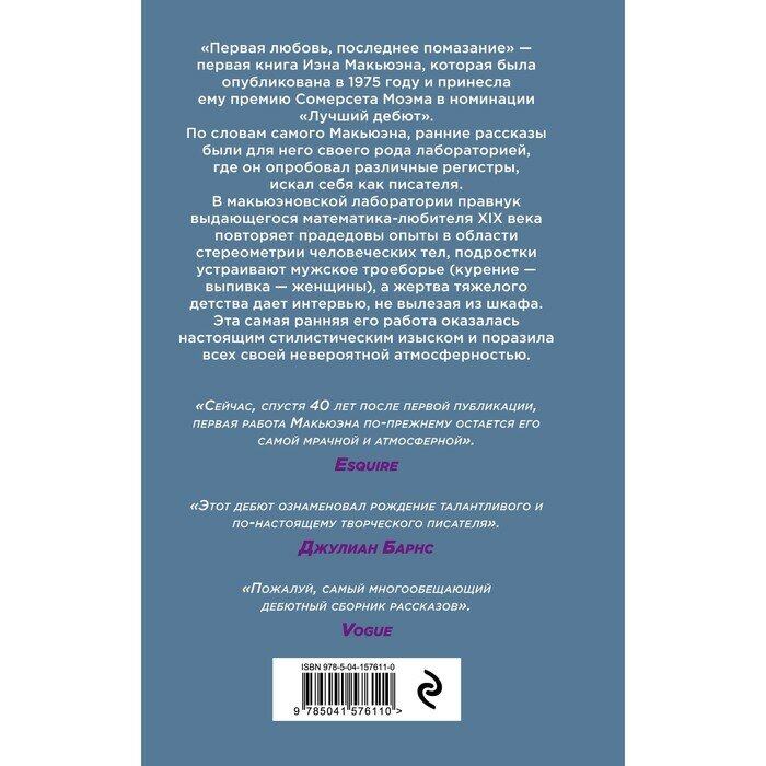 Первая любовь последнее помазание (Макьюэн Иэн Расселл); ООО "Издательство "Эксмо", 2022
