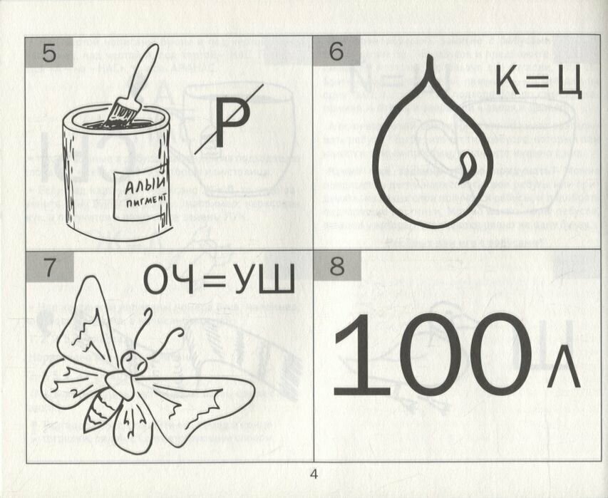 Альбом с глянцевой обложкой и черно-белыми рисунками. Рисунки достаточно крупные, и на них есть место для того, чтоб написать слово. Качество бумаги разочаровало, листы тонкие и просвечивают. Разукрашивать и писать можно только карандашом. Ребусы не сложные, но интересные, как раз для начинающих. В начале книги есть рекомендации. В конце есть список слов-ответов с пустыми окошками для номера ребуса.