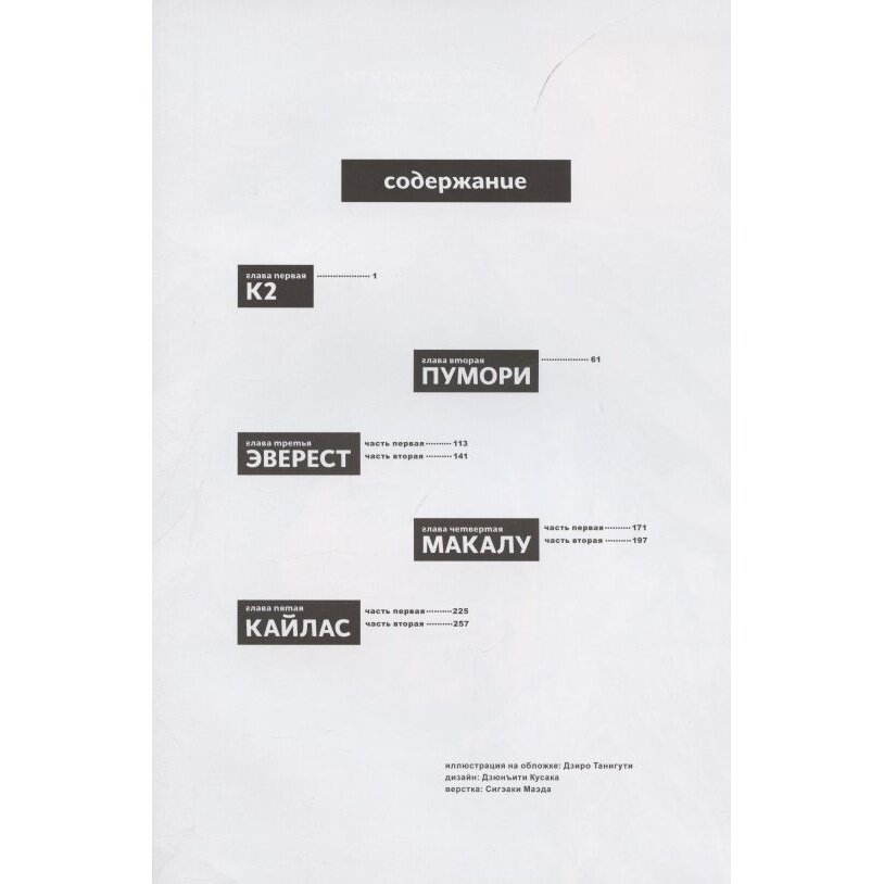 Книга состоит из нескольких истории о покорении героическими альпинистами несколькиз горных вершин. Истории хорошие, но ради чего стоит покупать эту книгу - так это ради рисунка Танигути.