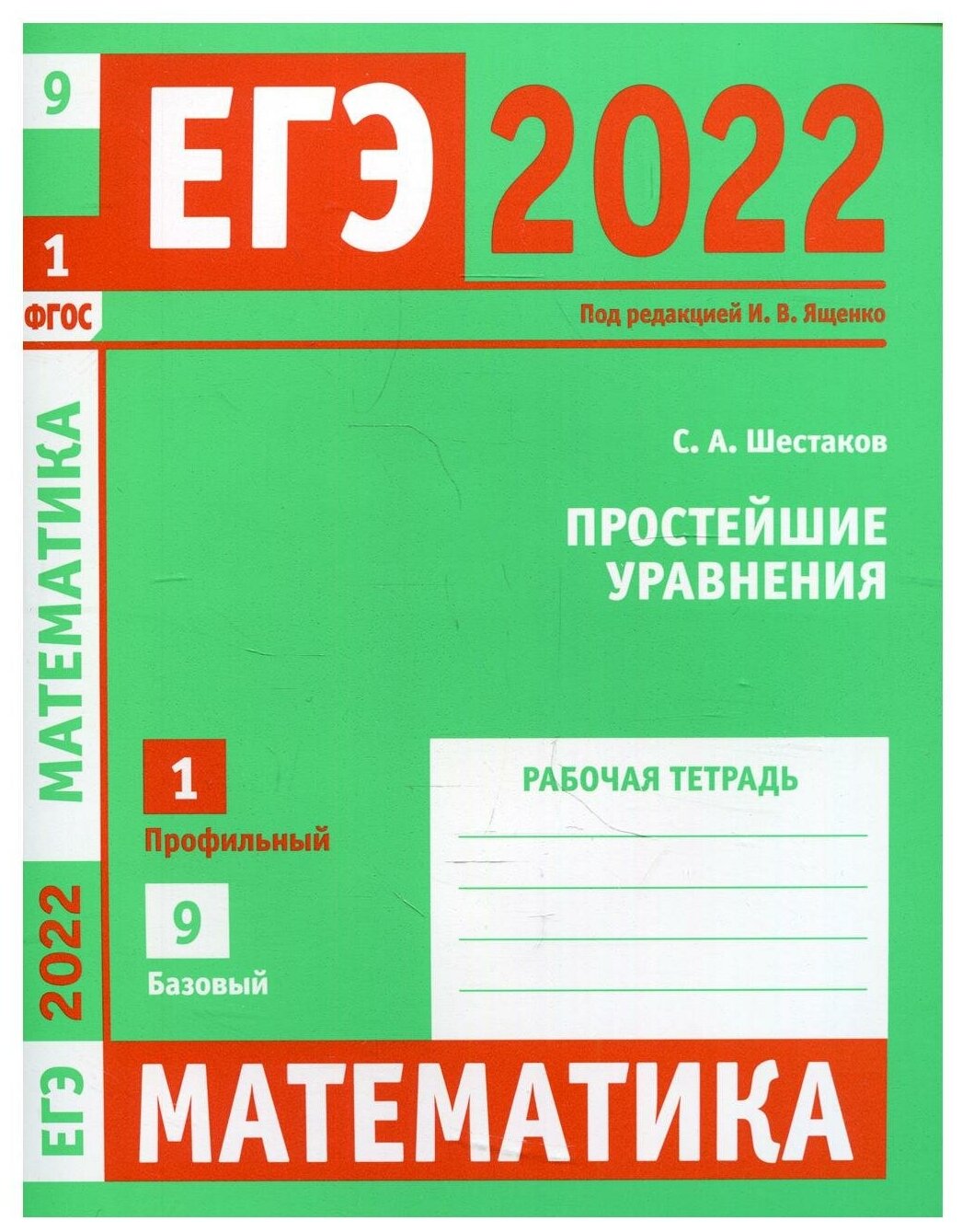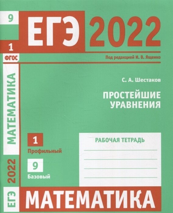 ЕГЭ 2022 Математика Простейшие уравнения Задача 1 профильный уровень Задача 9 базовый уровень Рабочая тетрадь (Шестаков Сергей Алексеевич); МЦНМО, 2022
