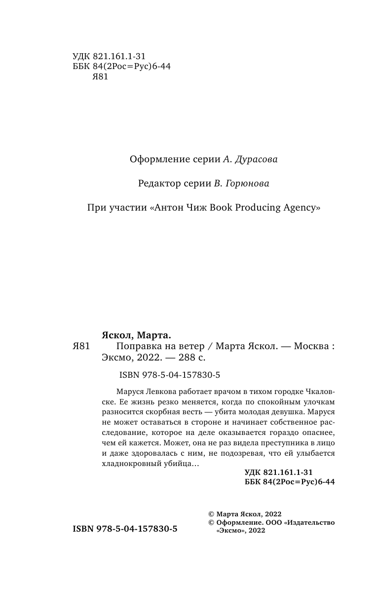 Книга: Поправка на ветер (Яскол Марта); ООО "Издательство "Эксмо", 2021