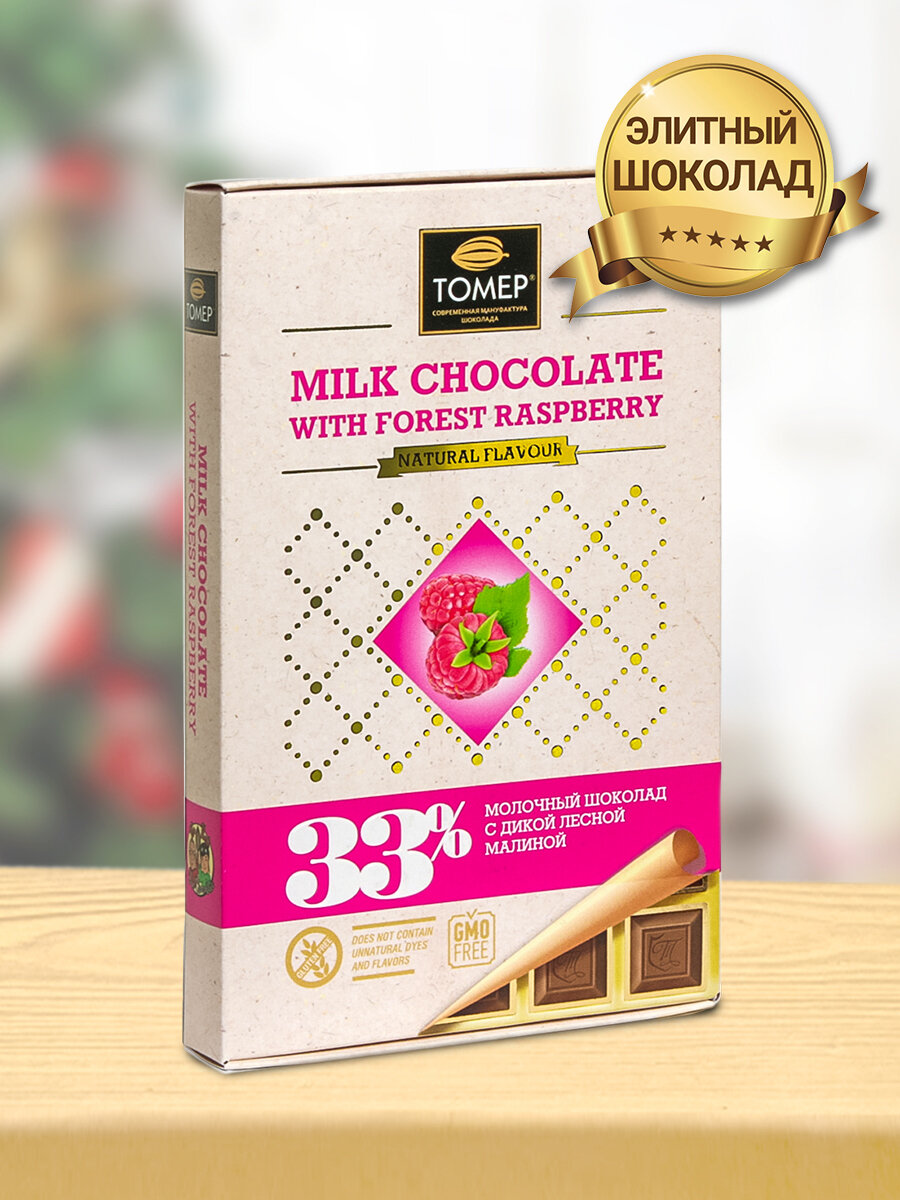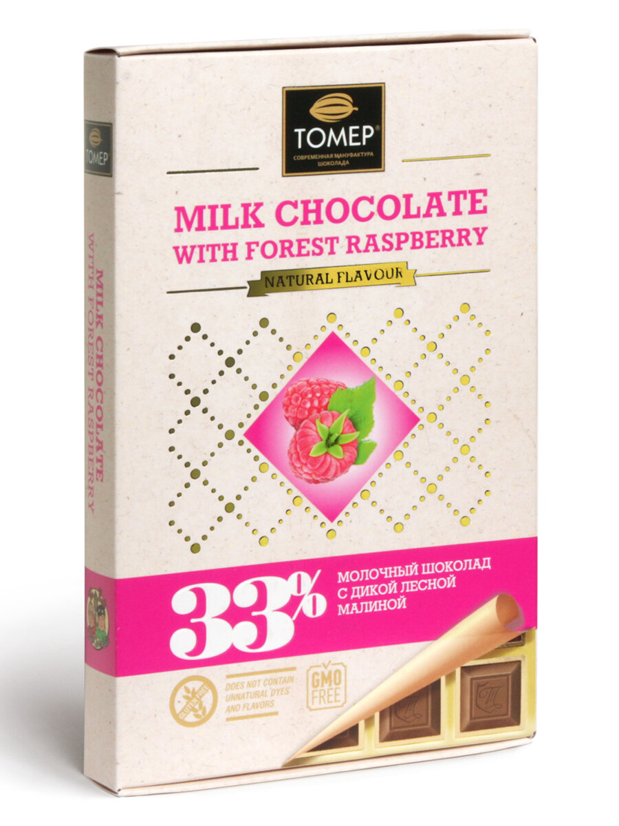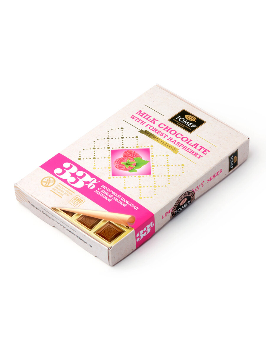 Шоколад Tomer молочный с дикой лесной малиной 33% 90г Томер
