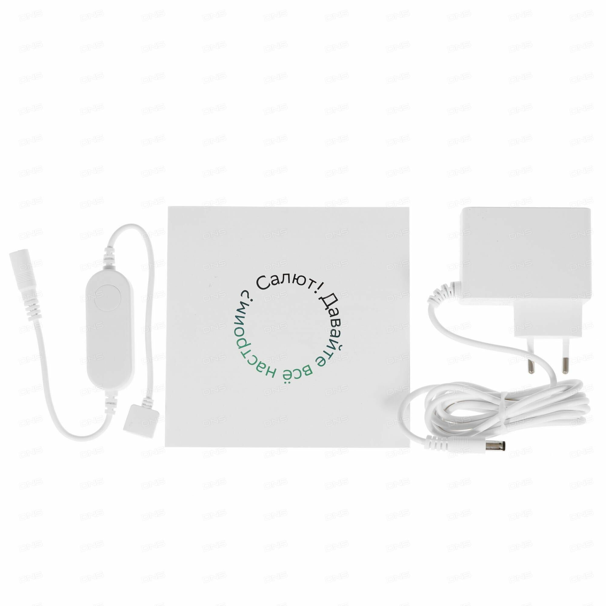 LED-лента входит в умный дом Sber. Ей можно управлять дистанционно: из соседней комнаты или даже с другого континента. Для этого понадобится бесплатное приложение Салют, умные колонки SberBoom, смарт-дисплей SberPortal, приставка SberBox или другое устройство с ассистентами Салют. По вашей команде светодиодная лента включится, выключится, поменяет цвет, яркость, цветовую температуру, насыщенность, запустит световой эффект, будет работать по таймеру. Несколько лент можно объединить в комнату или группу — и управлять ими одной командой. Лента предназначена для декоративного освещения, не мерцает и светит ярче, чем многие аналоги: у неё повышена плотность светодиодов. Длину ленты можно изменить: обрезать или соединить с другой лентой. Не работает с диммерами.